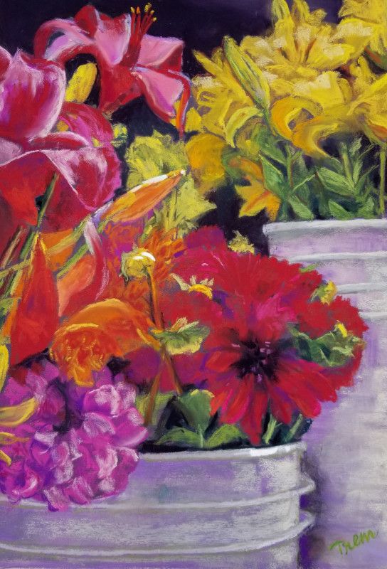 From her travel in France, she has painted scenes that she photographed, favoring the pure pigment of pastels. She currently focuses on portraits and landscapes.