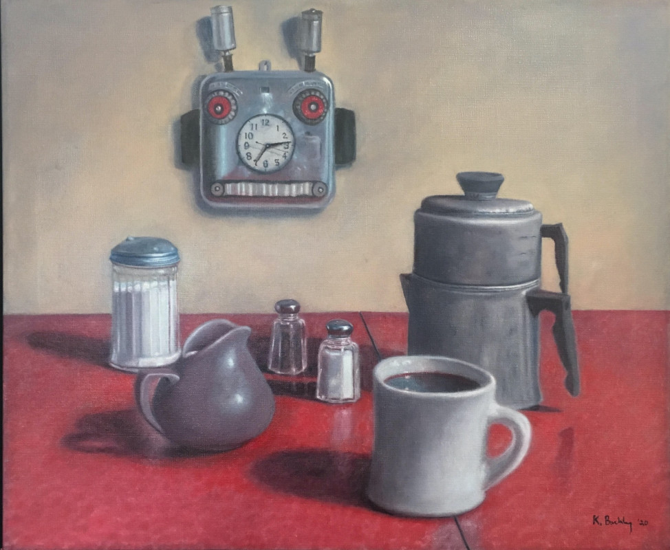 As a student, Kerry W. Buckley won several statewide art competitions and initially considered a degree in fine art. He was offered, but declined, an art scholarship choosing to become an historian specializing in American History. Throughout his academic career he continued to draw and paint. While living in western Massachusetts he developed friendships with regional neorealist artists Scott Prior, Randal Deihl and Jane Lund whose vision and techniques inspired his work. Since his retirement from academic life, he has studied portraiture and painting at the Guild Art Center in Northampton, MA, classical painting technique with Barbara Johnson, and indirect painting techniques with Julie Beck at the Academy for Realist Art. He is a Professional Artist member of the Copley Society of Art in Boston and is a Master Artist member of the Cape Cod Art Center. His work has been featured in competitive shows throughout New England and has received awards in national and regional shows.