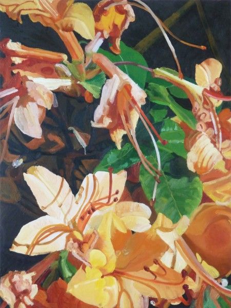 Over the past decade I have produced a series of paintings exploring the richness of life in the streams, marshes, gardens and woods around me. The macro and micro views in nature allow for a diverse interpretation of its organic forms in their varying stages of growth. This exhibition reveals the continuation of this search for further understanding and a fresh, personal expression of the natural world. I work with oil on canvas or wood panel inquiring with reverence the interconnection we have with our environment, its offerings of chaos and order, flow and stillness, growth and decay, all elements intrinsic to our shared lush life.