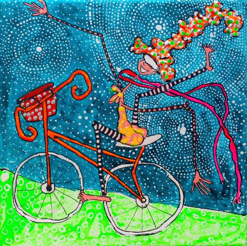 Currently I am working on a new series of drawings and paintings on canvas and paper. My work contains whimsical pen and ink drawings that focus on these fanciful creatures in a city-like landscape that are rich in color, full of creative patterns and bizarre movements. My recent series is focused on abstracted human figures that float and dance about on the surface of the canvas.
